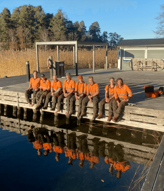 Vi brukar rekommendera att tidigt boka in en dag som passar för att fälla träd i skärgården, gärna då ni själva har möjlighet att vara med. Genom avstämning innan bedömer vi tillsammans med er den bemanning och vilka maskiner som behövs för att genomföra arbetet.